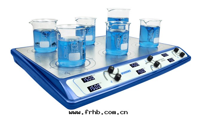 > 1, 4, 6 三(sān)个(gè)攪拌位(wèi)的(de)型号(hào)可(kě)供选擇,各(gè)个(gè)攪拌位(wèi)速度(dù)調节(jié)控制獨立