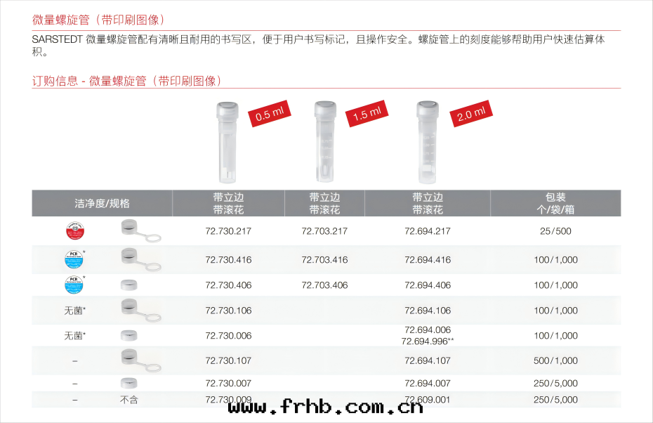 采用(yòng)安(ān)全(quán)的(de)密封(fēng)原理,搭配堅固耐用(yòng)的(de)聚丙烯管(guǎn),这(zhè)两(liǎng)大特点使得SARSTEDT微量(liàng)螺旋管(guǎn)有(yǒu)别于(yú)市(shì)场(chǎng)上(shàng)的(de)其(qí)他(tā)産品。其(qí)他(tā)産品特性(xìng)還(huán)包(bāo)括: